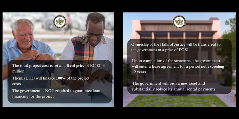 - At the end of the lease period, ownership of the Halls of Justice will be transferred to the Government of Saint Lucia at a price of EC $1.