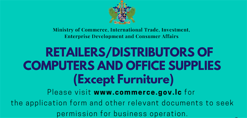 The Ministry of Commerce urges businesses to visit our website: www.commerce.gov.lc for the application form and other relevant documents to seek permission for business operation.